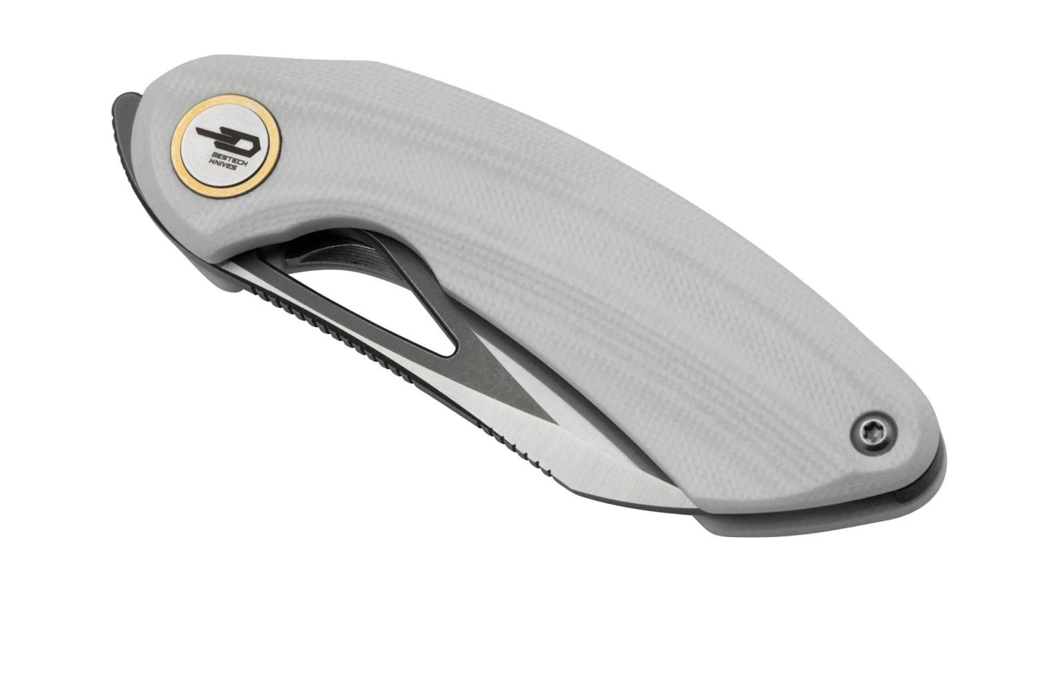 Le Bestech Bihai BG53E est un super couteau de poche EDC compact, conçu par Ostap Hel. Ce couteau a une lame impressionnante, de style Hawkbill. On l’utilise pour ouvrir des emballages et des cartons, ou pour trancher de la corde.