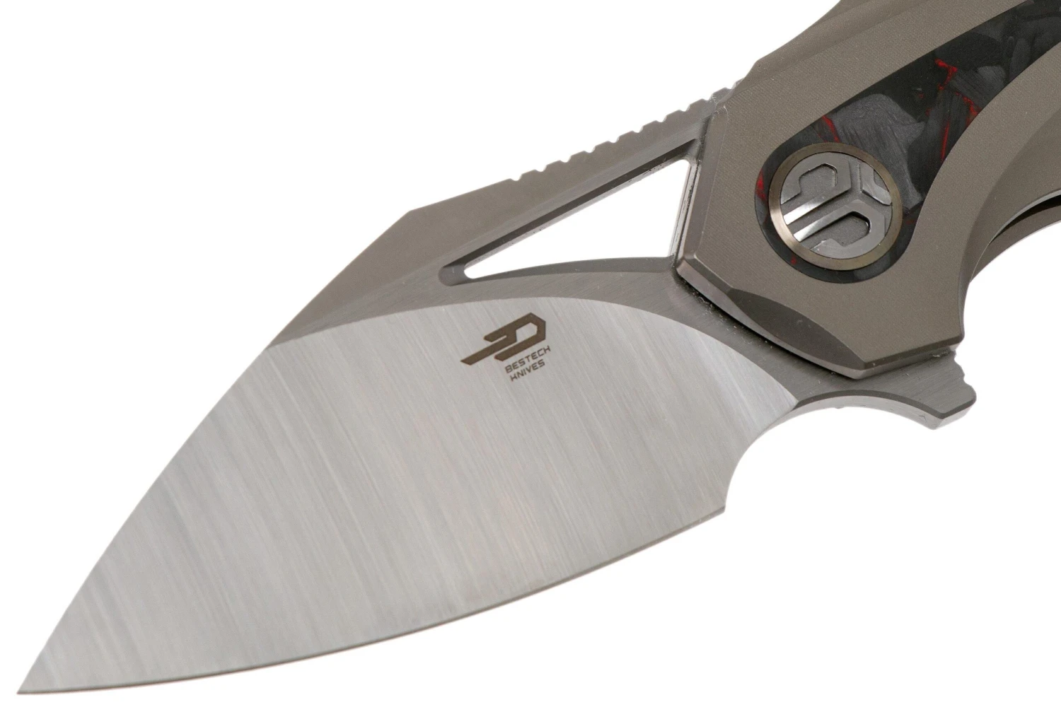 Le Bestech Nuke BT2107 est un superbe couteau de poche compact, conçu par Grzegorz Grabarski, alias Kombou. Un designer polonais. Ses designs sont artistiques avec une pointe de futurisme. On retrouve souvent sur ses modèles des formes de lames excentriques et un travail de fraisage surprenant sur les manches. Les couteaux de Grzegorz Grabarski sont uniques.