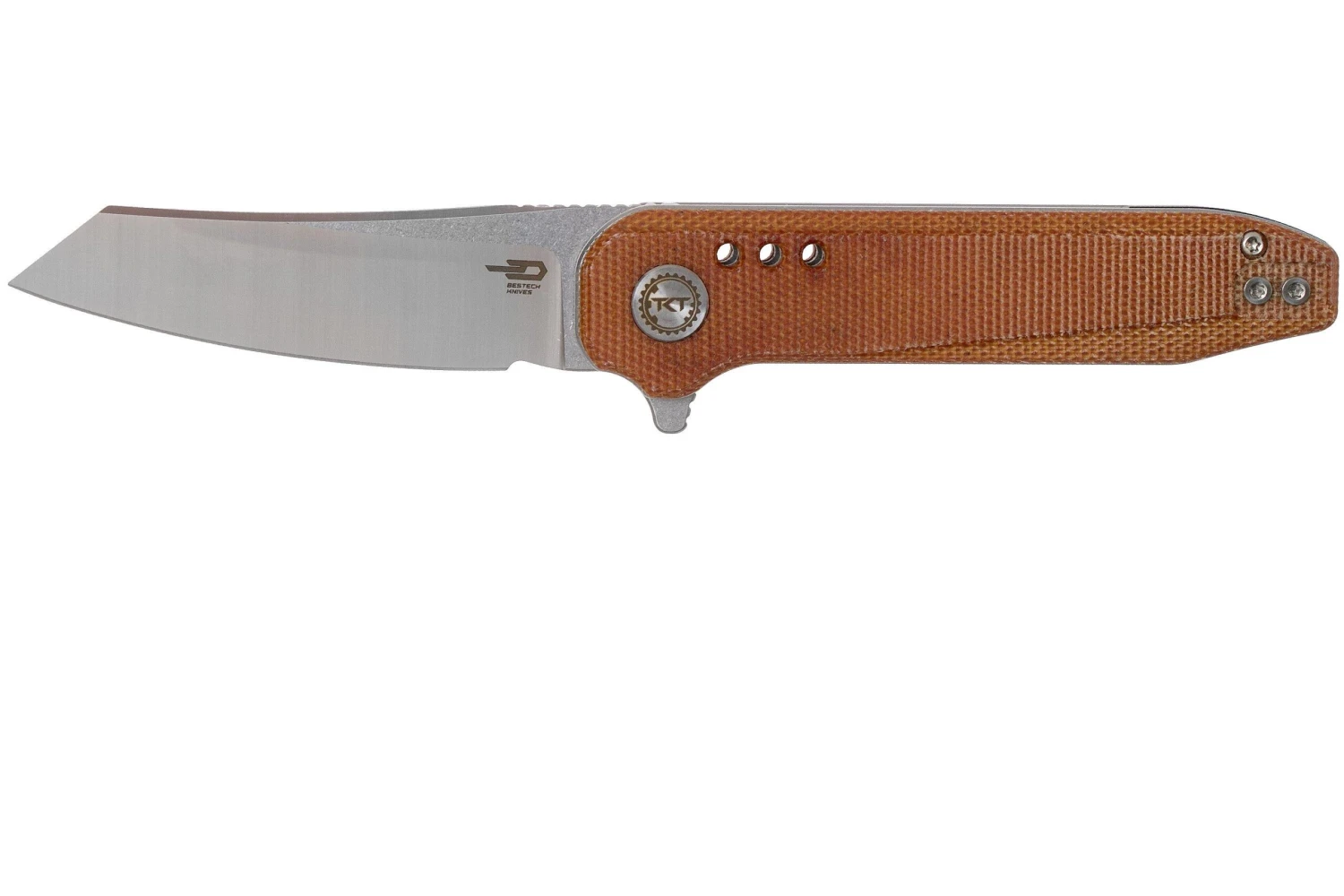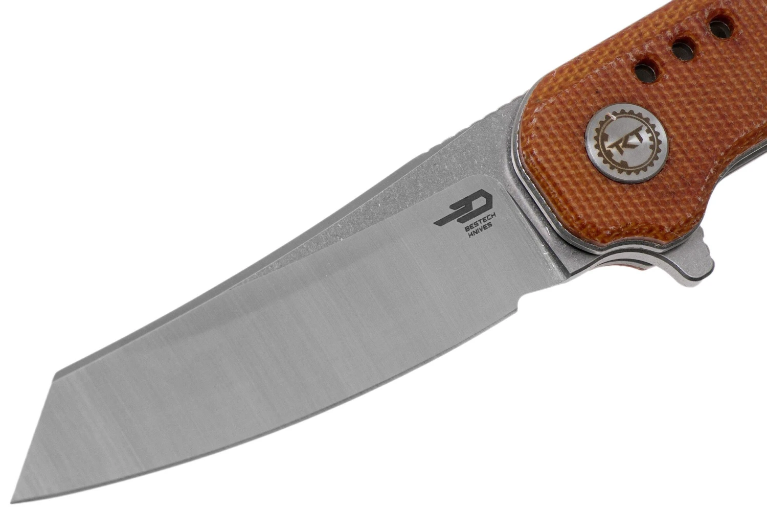 Le Bestech Syntax est un couteau de poche très cool, réalisé par les frères Teryl et Seth Todd de Todd Knife & Tool. Leur design distinctif se reconnaît à son aspect industriel et aux lignes épurées. Les trois trous dans le manche sont également typiques.