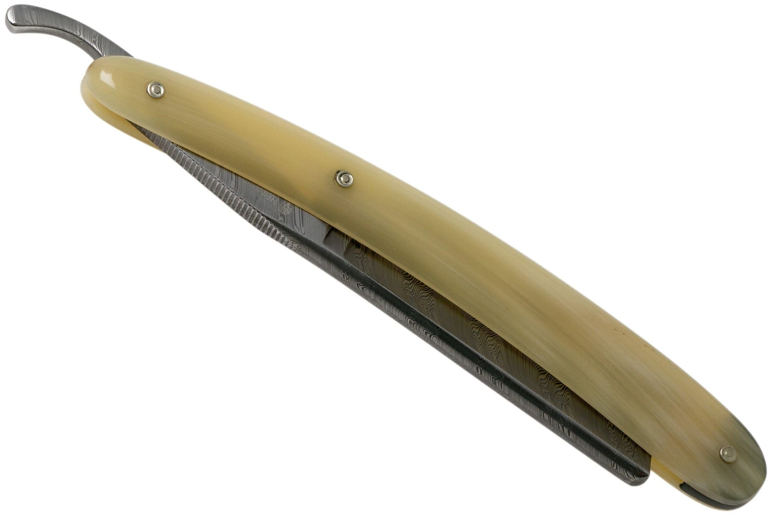 Le Böker Manufaktur Damascus Horn 140623DAM est un rasoir coupe-choux de la plus haute qualité. La marque Böker s’est forgé une excellente réputation en fabriquant des rasoirs coupe-choux fantastiques depuis plus de 100 ans. Ce rasoir droit est fabriqué dans l’atelier de Böker situé à Solingen en Allemagne.