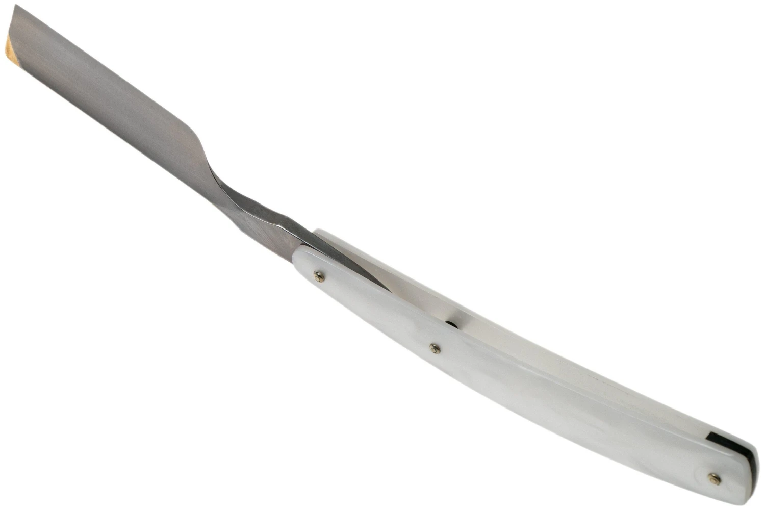 Le Böker Manufaktur Mother of Pearl 2.0 140556 est un rasoir coupe-choux de la plus haute qualité. Un magnifique rasoir avec un effet nacré, et des accents dorés sur la lame. La marque Böker s’est forgé une excellente réputation en fabriquant des rasoirs coupe-choux fantastiques depuis plus de 100 ans. Ce rasoir droit est fabriqué dans l’atelier de Böker situé à Solingen en Allemagne.