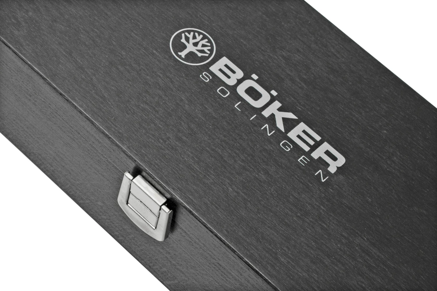 Le Böker Manufaktur Swiss Dagger Mosaic Damascus 121554DAM est un poignard stylé au design antique. Ses origines remontent au début du XXIIIe siècle. Au XVe et XVIe siècle, c’était l’arme secondaire classique de nombreux piquiers. On l’appelait aussi “baselarde”. Les grands renforts horizontaux au niveau de la garde et du pommeau sont caractéristiques.