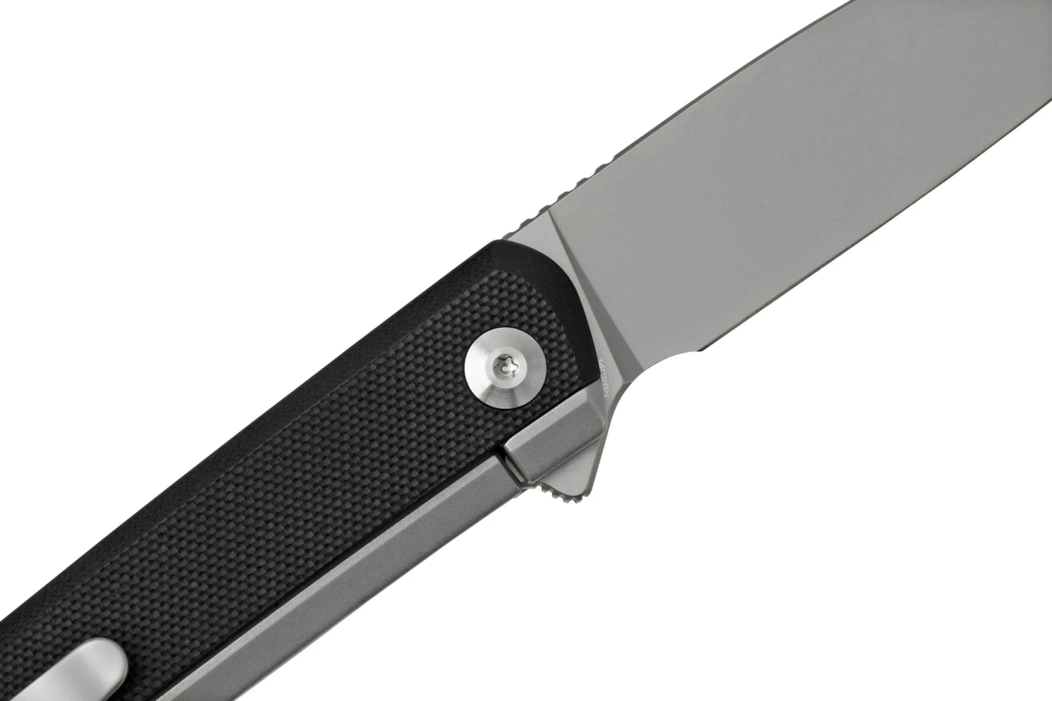 Le Civivi Savant C20063B-2 est un couteau de poche très fin. On ouvre la lame avec le flipper. Les roulements à billes en céramique rendent l’action extrêmement souple. Une fois ouverte, la lame est bloquée par un framelock. La lame mesure quasiment 9 cm de long, et ce couteau reste assez long, même replié. Mais il reste tout de même discret une fois glissé dans la poche, et on le sent à peine.