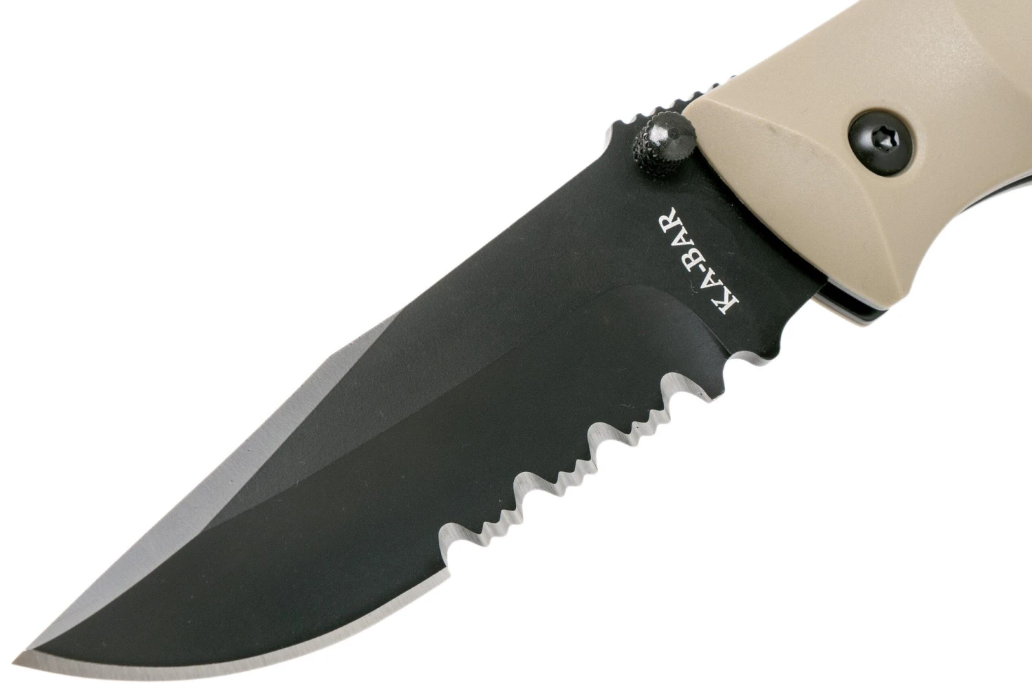 Le KA-BAR Mule Folder est, tout comme le KA-BAR 1217, un couteau très robuste. On pourrait même dire qu’il s’agit de la version couteau de poche de ce classique mondialement connu. Lors de l’utilisation de ce couteau, on se rend compte de la robustesse du backlock. On entend un clic familier lors de l’ouverture de la lame. Il s’agit du moment où la lame tombe dans le mécanisme de verrouillage. Avec 215 grammes, ce couteau ne fait pas partie des poids plume. Mais ce poids, en combinaison avec le verrouillage solide rend ce couteau parfaitement adapté pour un usage intensif.