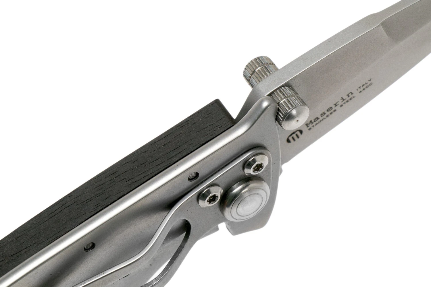 Le Maserin Onefold est un petit couteau de poche spécial, avec un manche très intéressant. Il arbore une face en ébène très fine et une en acier pour le verrouillage. Une conception originale, et pourtant très légère. Ce qui surprend chez ce couteau, c’est qu’il est orné d’or 24 carats !