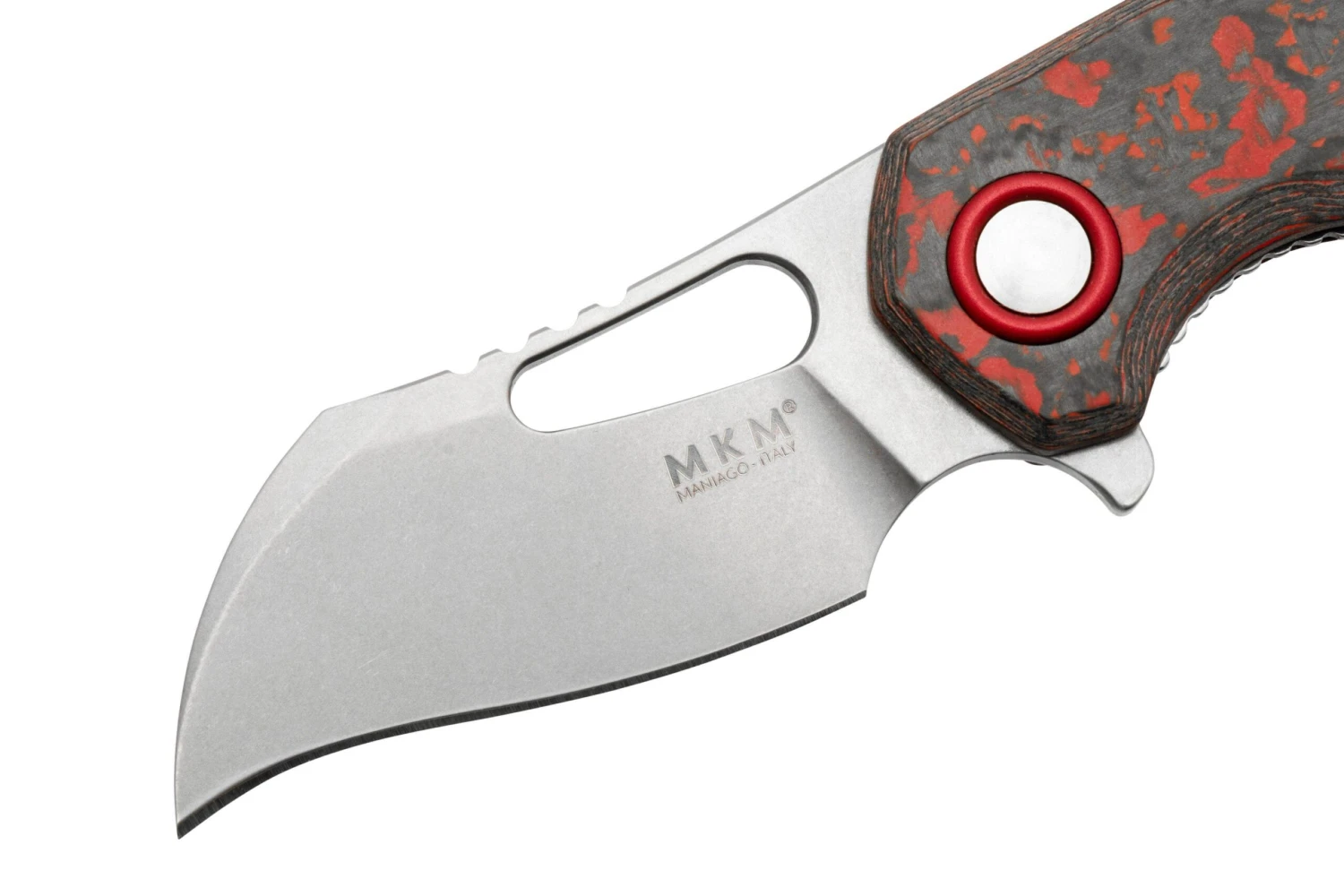 Le MKM Isonzo est un solide couteau conçu par Jesper Voxnaes et fabriqué par Fox Knives. Le style de Voxnaes est clairement reconnaissable. Les lignes fluides, la forme du trou pour le pouce et le backspacer avec œillet de lanyard sont typiques de son style. Cet œillet pour lanyard est extra large, afin de pouvoir y attacher un mousqueton. Car en plus d’être conçu pour une utilisation EDC, ce couteau est destiné aux amateurs d’activités outdoor et aux alpinistes qui attachent leur couteau au reste de leur équipement. Grâce à sa petite taille, l’Isonzo est parfait comme couteau secondaire ou comme couteau passe partout et discret.