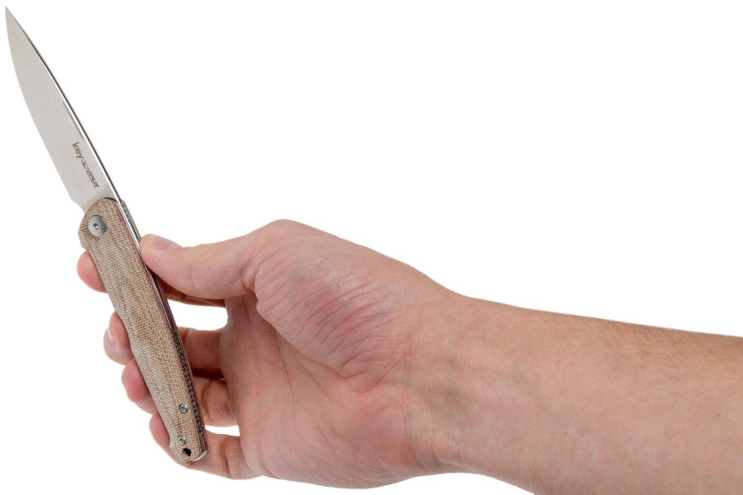 Le Viper Key V5976CN Natural Canvas Micarta est un couteau de gentleman très élégant conçu par Jesper Voxnaes. Son style de design unique et si caractéristique se retrouve dans ce couteau de gentleman très spécial. On n’observe quasiment aucune ligne droite. Toutes les formes, lignes et les moindres détails ont été créés pour un ensemble harmonieux et artistique. Le profil fin est sublime, faisant de ce couteau de gentleman l’accessoire parfait pour les tenues chics.